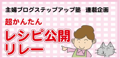 主婦ブログステップアップ塾主催の、レシピリレーに参加しています。オンラインサロンのメンバー13名で、毎日超カンタンなレシピを紹介していく、というリレー企画をしています。今日は私が担当します! 昨日のミニマリストは世界を変える!のメグさんからバ…