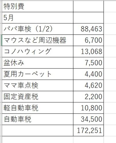 節約「50代夫婦」5月の特別費をまとめました。